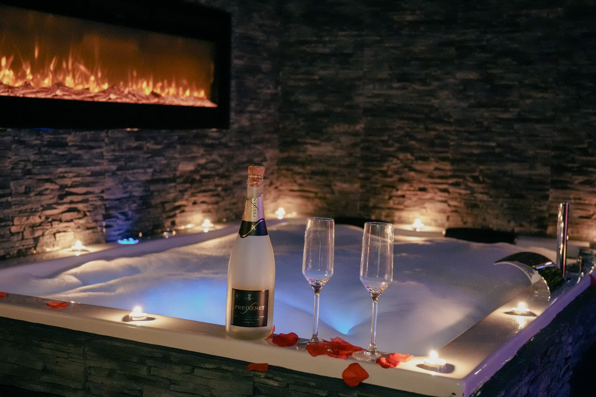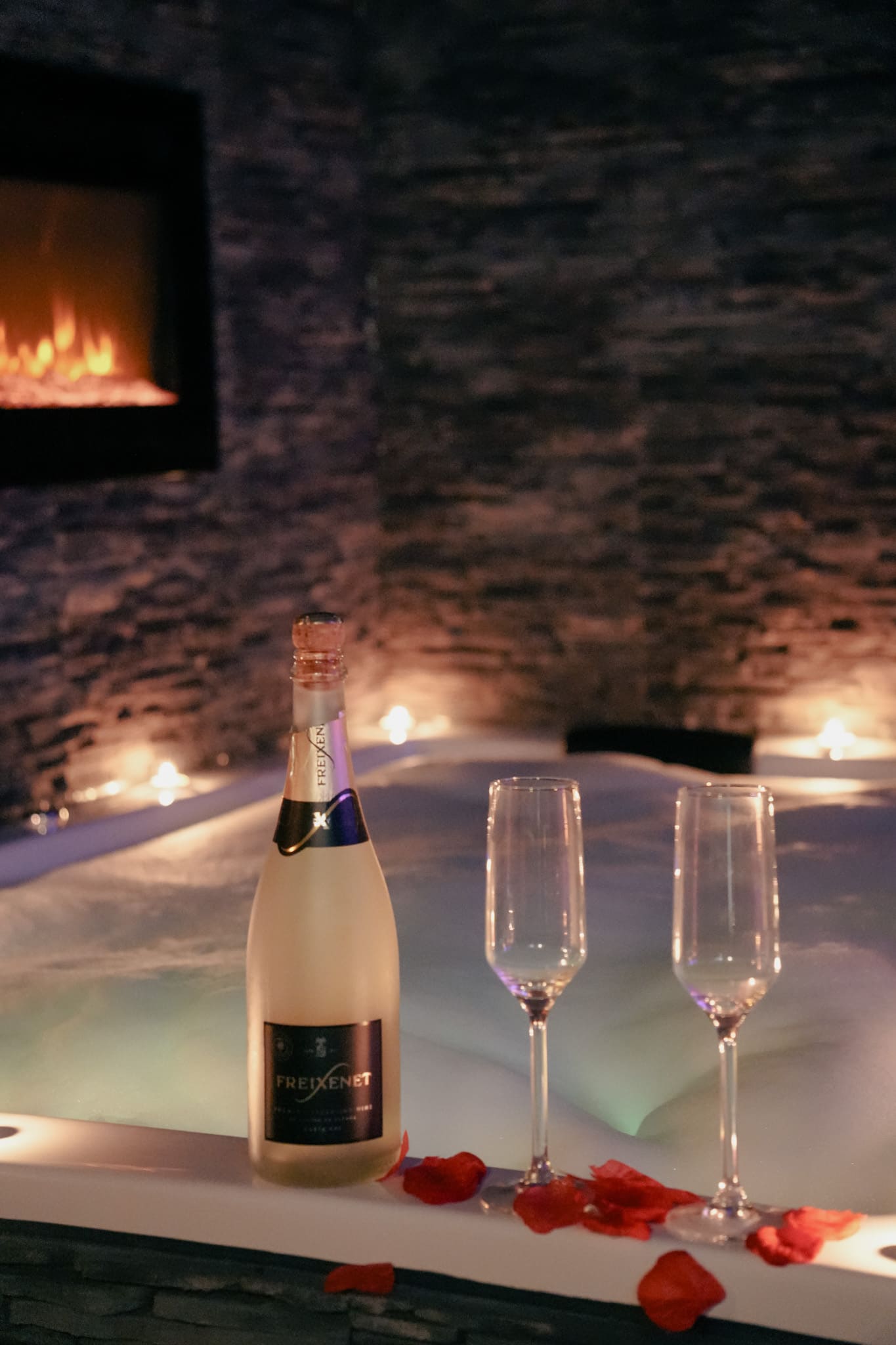 Du möchtest deinen Aufenthalt in unserem privaten Spa noch besonderer gestalten? Mit unserem Extra-Romantik-Paket schaffst du die perfekte Atmosphäre für unvergessliche Stunden zu zweit. Während Kerzen den Raum in warmes, sanftes Licht tauchen, verleihen edle Rosenblätter dem Spa einen Hauch von Luxus und Intimität. Abgerundet wird dieses Arrangement durch eine Flasche prickelnden Sekts, die zum Anstoßen auf gemeinsame Momente einlädt.